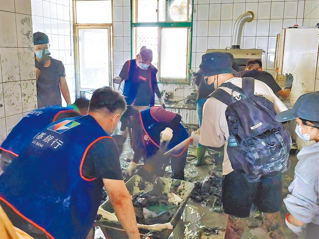 凱基志工深入災區,協助花蓮受災居民清除泥濘,恢復家園原貌。(凱基金控提供/黃琮淵台北傳真)