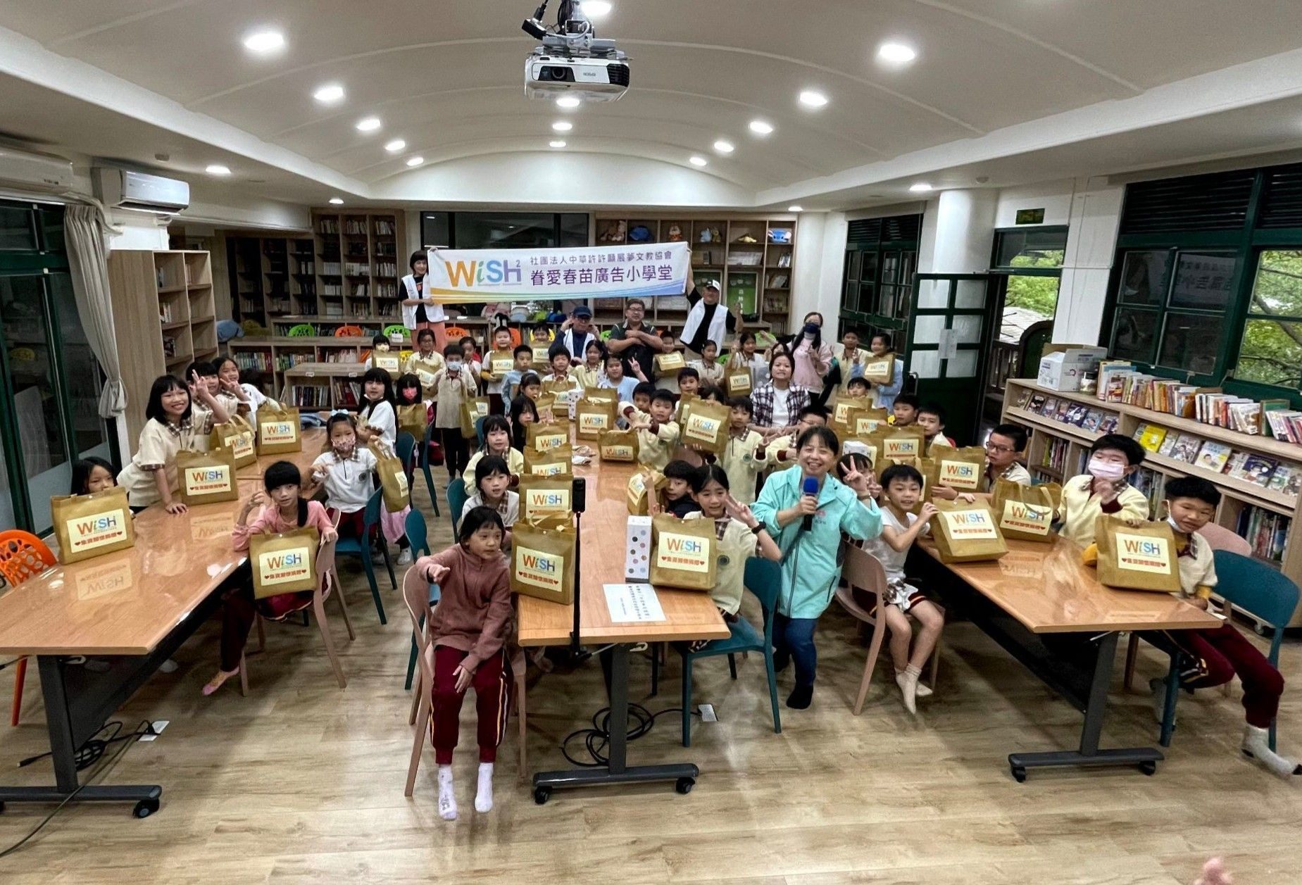 在全程一個半小時的教學分享中,課程內容充滿了互動性與趣味性。志工老師們透過引導式的教學方法,帶領學生們從日常生活中觀察、分析廣告,並鼓勵他們發揮想像力,嘗試為自己喜歡的事物設計廣告。現場氣氛熱烈,孩子們踴躍舉手發言,他們天真爛漫又充滿創意的回答,讓志工老師們也深受感動。這不僅是一堂廣告課,更是一場關於夢想、溝通與表達的啟蒙課。