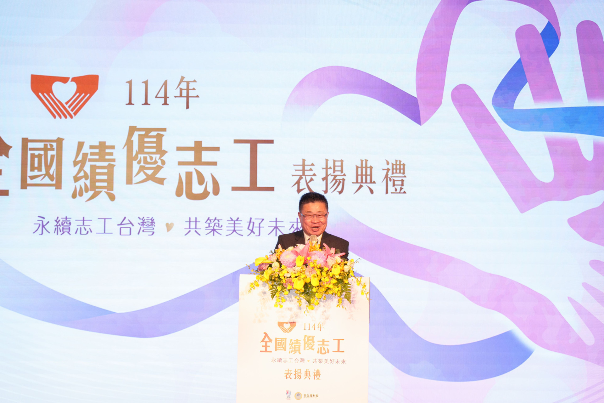 花蓮馬太鞍溪堰塞湖災害事件中,「鏟子超人與各行各業專業超人志工」讓各界見證「臺灣志工」的力量,臺灣許多角落都有志工的投入與支持,推動著社會前進。衛生福利部為慶祝「國際志工日」、弘揚志願服務精神,於本(114)年1128日在大直典華幸福大樓盛大舉辦「全國績優志工表揚典禮」,表揚5位獲衛生福利特殊貢獻獎志工、25隊績優衛生福利志願服務志工團隊及777位服務時數達8,000小時以上獲全國「金牌獎」志工。衛生福利部呂建德次長親臨現場頒奬,感謝志工夥伴無私付出與努力,展現臺灣社會的溫暖與韌性。