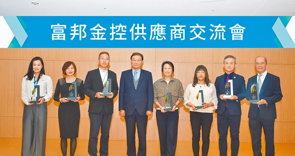 富邦金控9日舉辦「2025供應商ESG交流會」,由富邦金控副董事長曾銘宗(左四)頒獎,表揚永續評鑑表現優異供應商。(富邦金提供╱洪凱音台北傳真)