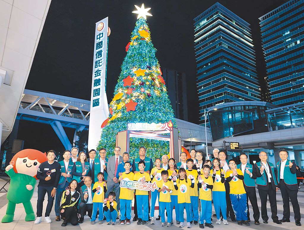 第41屆「點燃生命之火」10日舉行點燈記者會,並由中信金控董事長顏文隆、中信慈善基金會董事長辜仲諒等來賓共同點亮「星願之樹」。(中信慈善基金會提供)