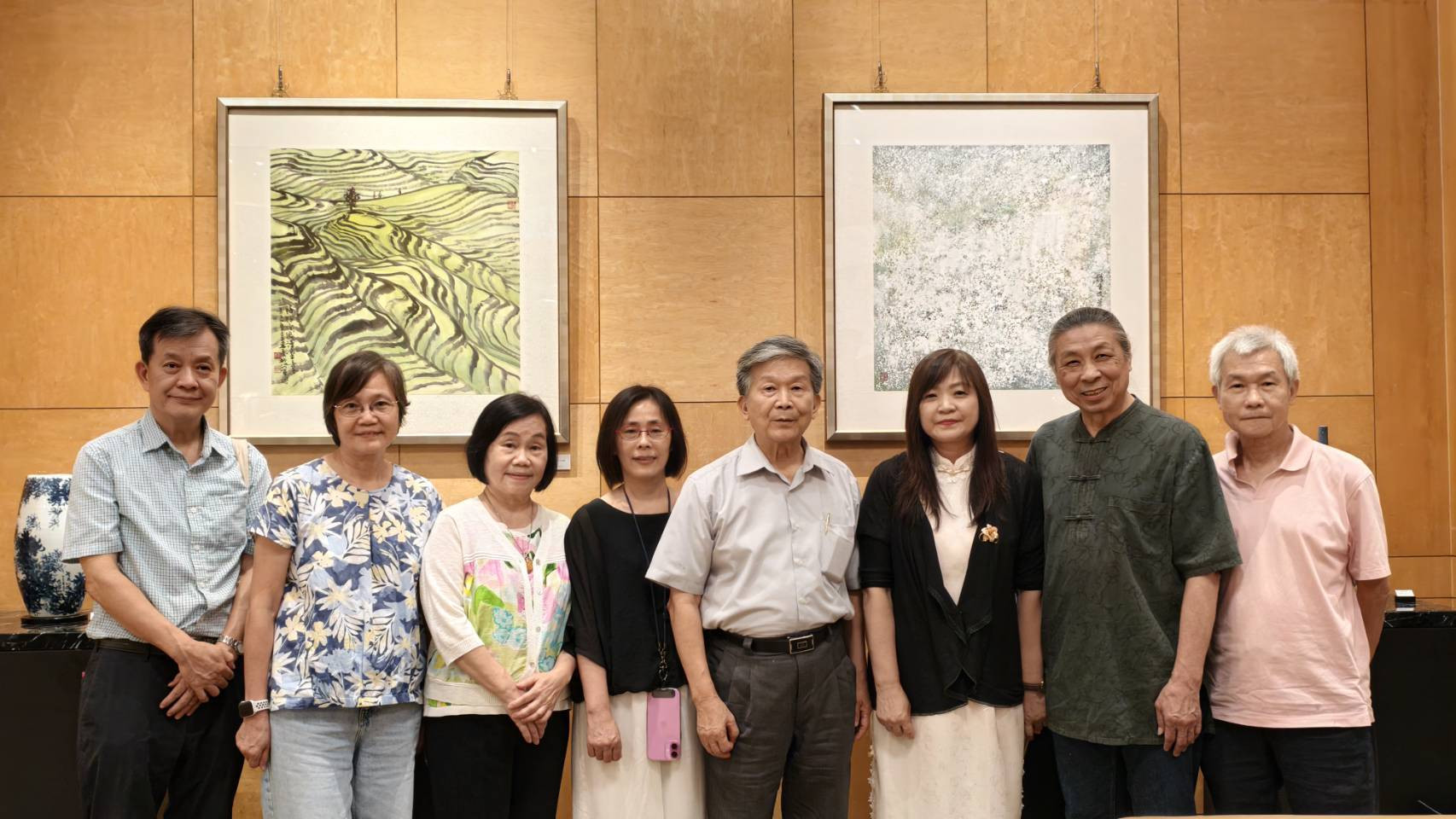 「釉墨乾坤」石青畫會2025彩瓷彩墨展指導老師羅振賢教授(右四)暨參展藝術家.