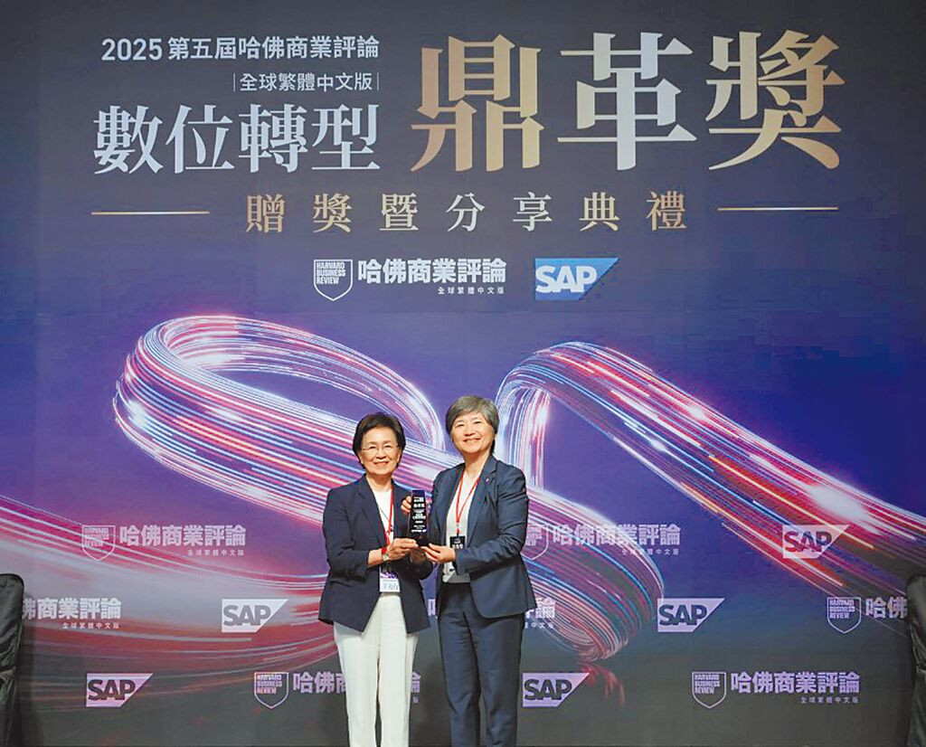 凱基銀行獲「數位轉型鼎革獎」,由《哈佛商業評論》全球繁體中文版發行人王力行(左)頒獎,凱基銀行資深副總經理盛嘉珍(右)代表受獎。(凱基提供/黃琮淵台北傳真)
