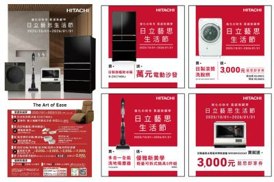 秋冬家電最優惠,開啟秋冬質感新生活,好康都在「日立藝思生活節」