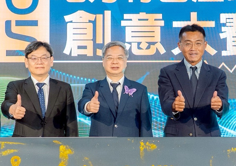 「2025地方特色產業創意大賽」頒獎典禮上國發會主任委員葉俊顯(左起)、經濟部部長龔明鑫、經濟部中小及新創企業署署長李冠志表揚並肯定臺灣地方產業的創意與努力。