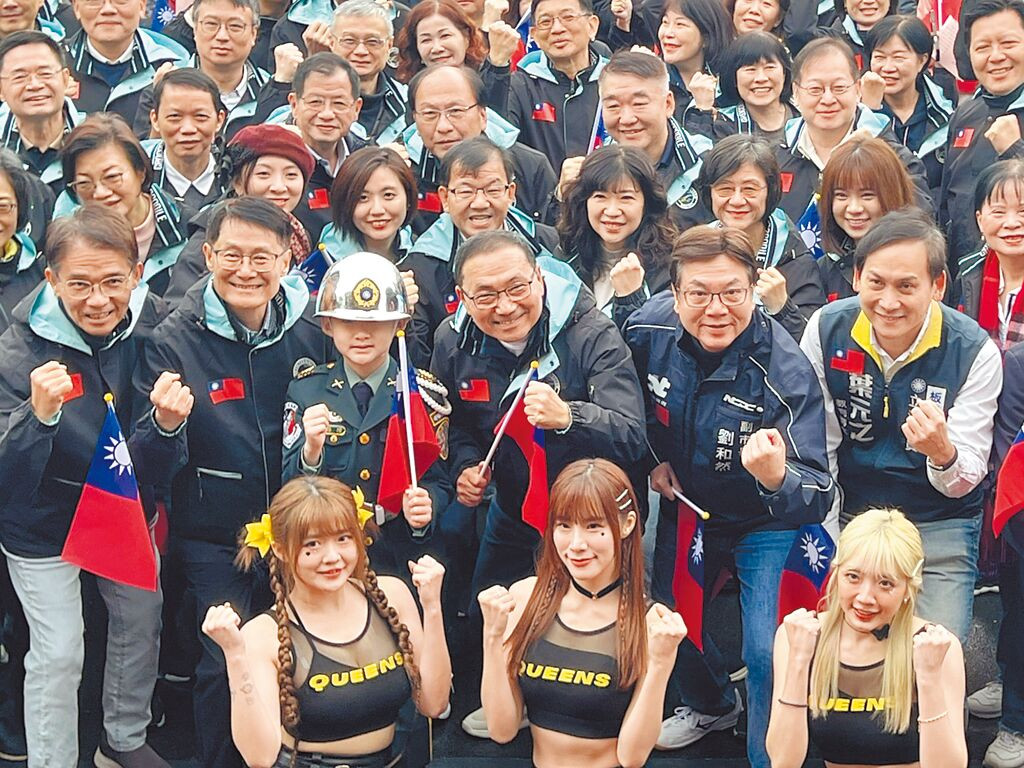 新北市長侯友宜(二排右三)率市府團隊參加元旦升旗典禮,齊賀新年快樂。(王揚傑攝)