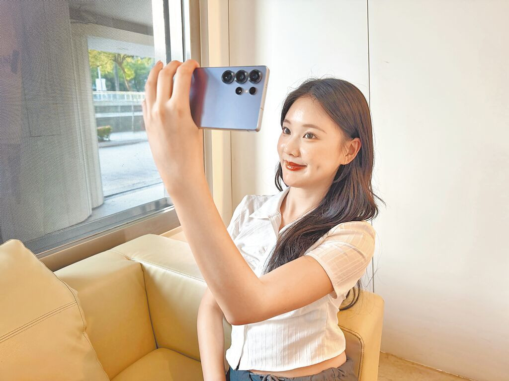 伊林模特兒林玟萱體驗三星Galaxy S25 Ultra。(古明弘攝)