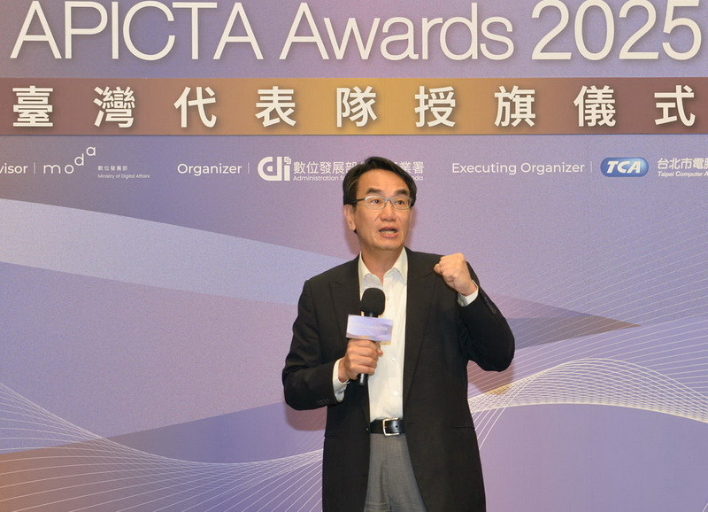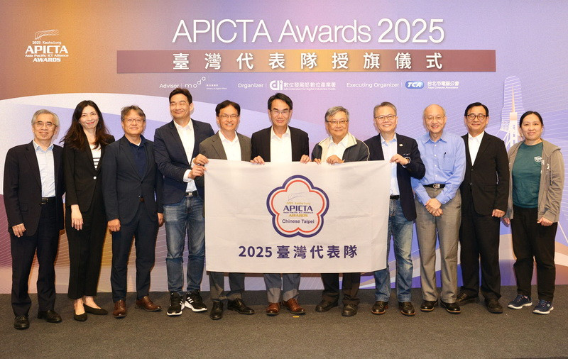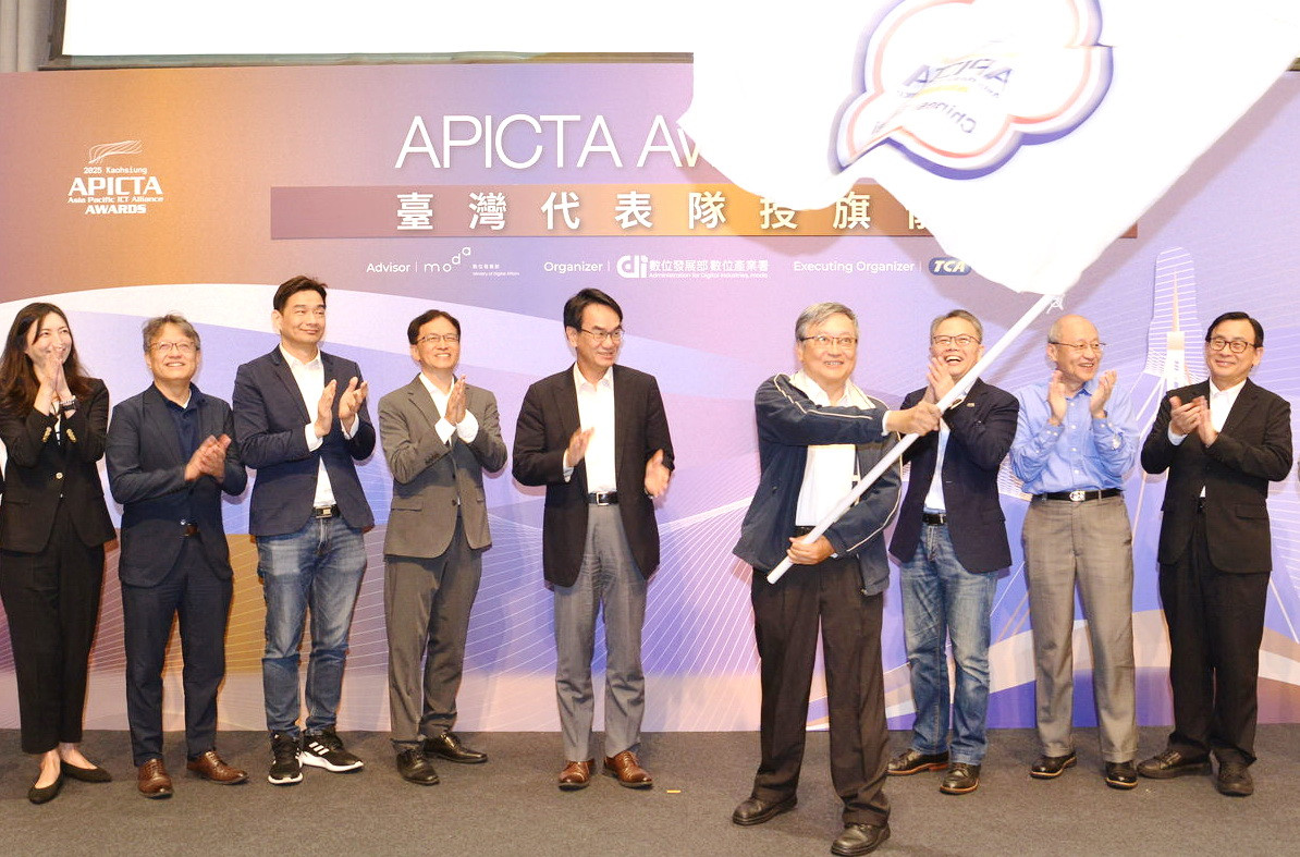 亞太資通訊科技聯盟大賽(APICTA Awards)為亞太資通訊科技年度奧斯卡獎,數位發展部爭取於12月5日至8日在臺灣主辦 APICTA Awards 2025,這是睽違9年,臺灣再度舉辦。為將獎項留在臺灣,數發部積極廣邀國內具潛力企業及學生團隊參與臺灣代表隊選拔並培訓,並於10月29日由數發部林宜敬部長授旗,一方面恭賀團隊從激烈選拔過程脫穎而出進入培訓階段,另一方面勉勵代表隊勇敢迎戰國際競賽,展現臺灣數位科技實力為國爭光。