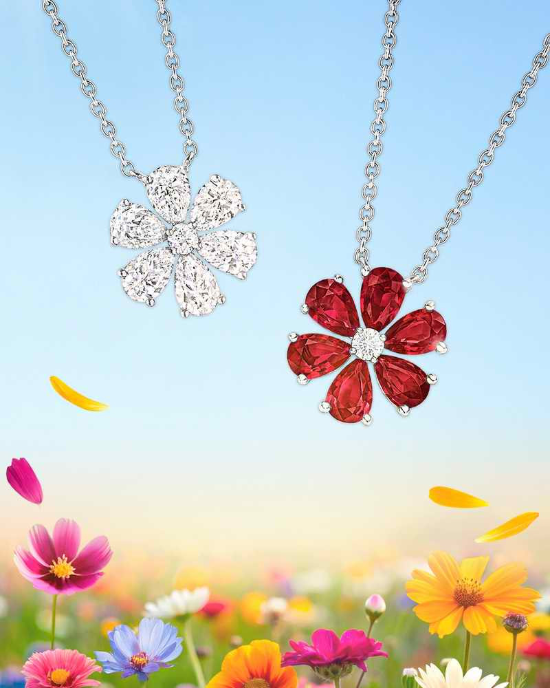 勿忘我Forget-Me-Not 系列珠寶款式多元——從適合日常配戴的粉紅藍寶石鑽石戒指及墜鍊,到適合隆重場合的Lariat藍寶石鑽石項鍊及Diamond Drop耳環,讓您在任何場合都能閃耀美麗光芒。每件作品以圓形明亮式、水滴型與馬眼型切工的藍寶石、粉紅藍寶石、紅寶石與鑽石相互交織,將花朵綻放的瞬間,轉化成永不凋零的珠寶篇章。