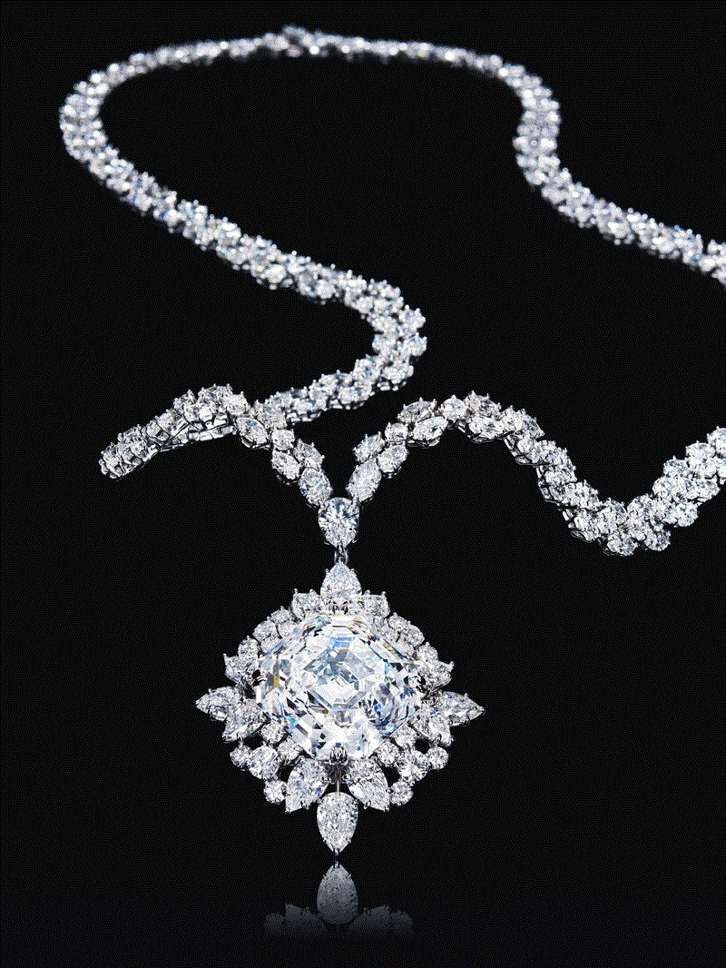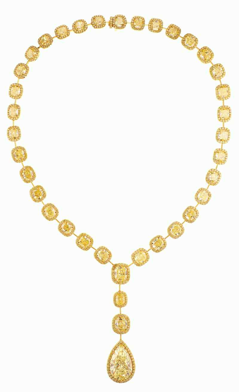 海瑞溫斯頓 枕型與水滴型切工黃鑽項鍊