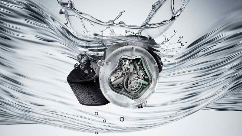 HUBLOT 宇舶錶與享譽國際的美國藝術家暨品牌大使 Daniel Arsham 再度攜手推出話題鉅作 : MP-17 Arsham Splash 藍寶石鈦金十日動力儲存腕錶。作品以「時間的流動」為靈感,融合有機輪廓與透明材質,重新定義現代製錶語彙,開啟高級製錶與當代藝術的全新篇章。MP-17 延續 MP-16 的創作精神,將水滴形態昇華為更具動態張力的水花造型。這枚時計不僅是一件精密儀器,更是一場關於時間、材質與光影的藝術實驗 , 全球限量 99 枚。