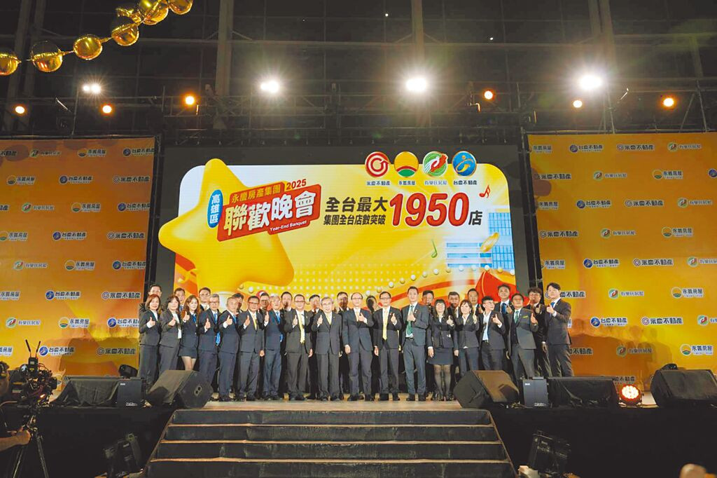 高雄永慶加盟四品牌砸下2千萬辦尾牙,集團董事長孫慶餘特地南下一起同樂。(永慶房產集團提供)