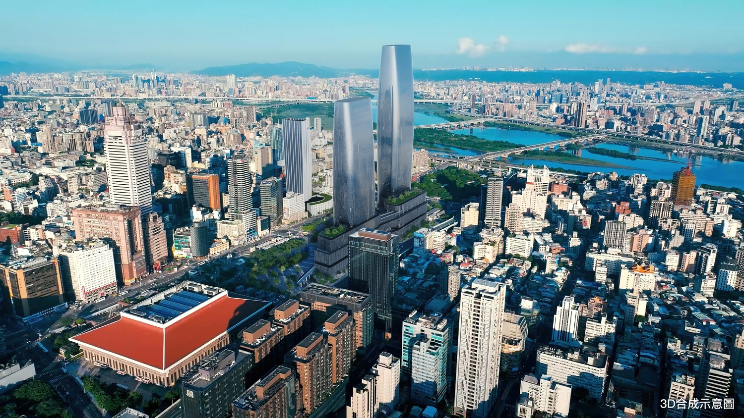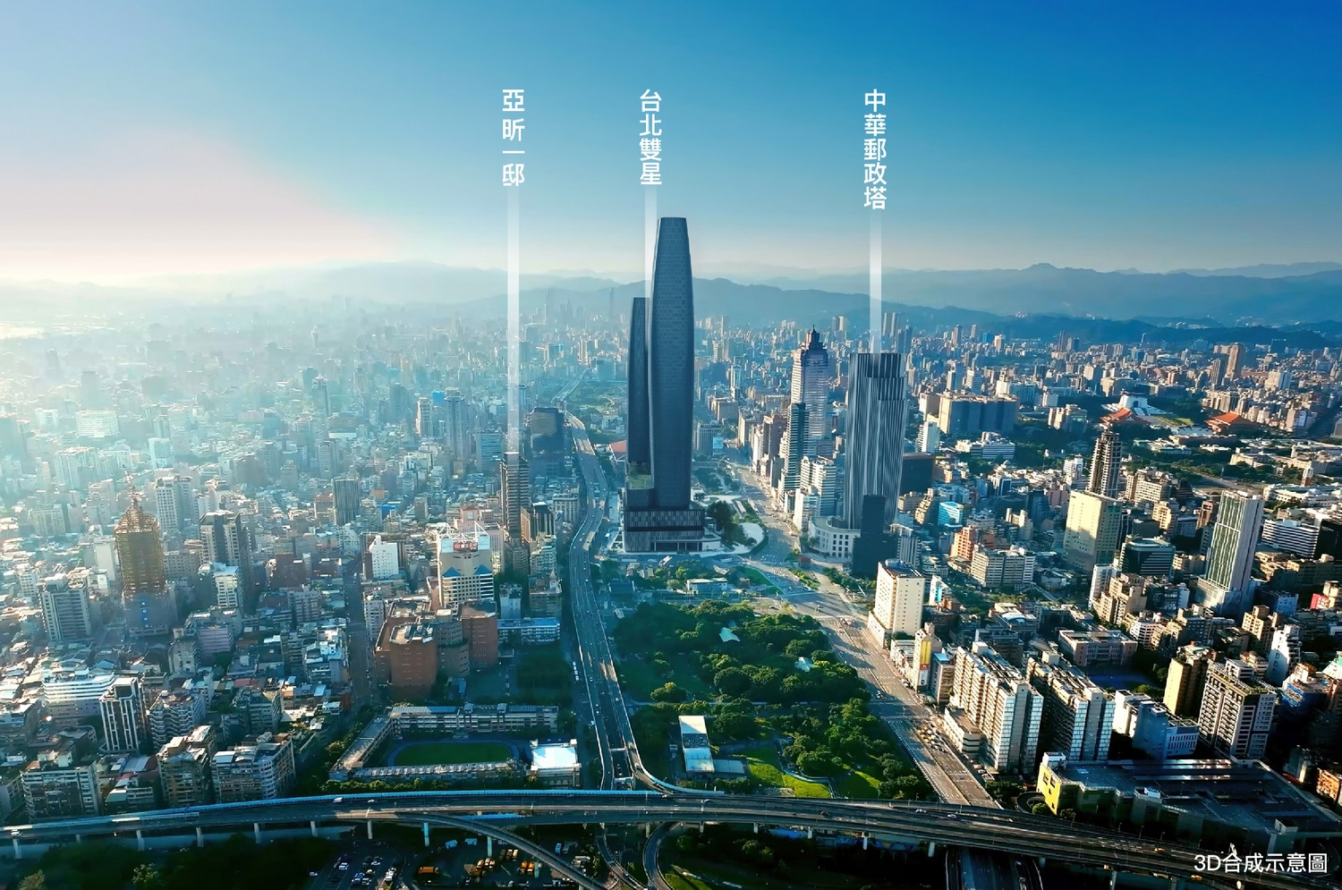 美國SOM團隊設計操刀的台北雙星與普立茲克獎曲線女王ZahaHadid留給台北市的中華郵政塔未來將同框,讓西區門戶躍升台北國際能見度最高的美學建築門戶。