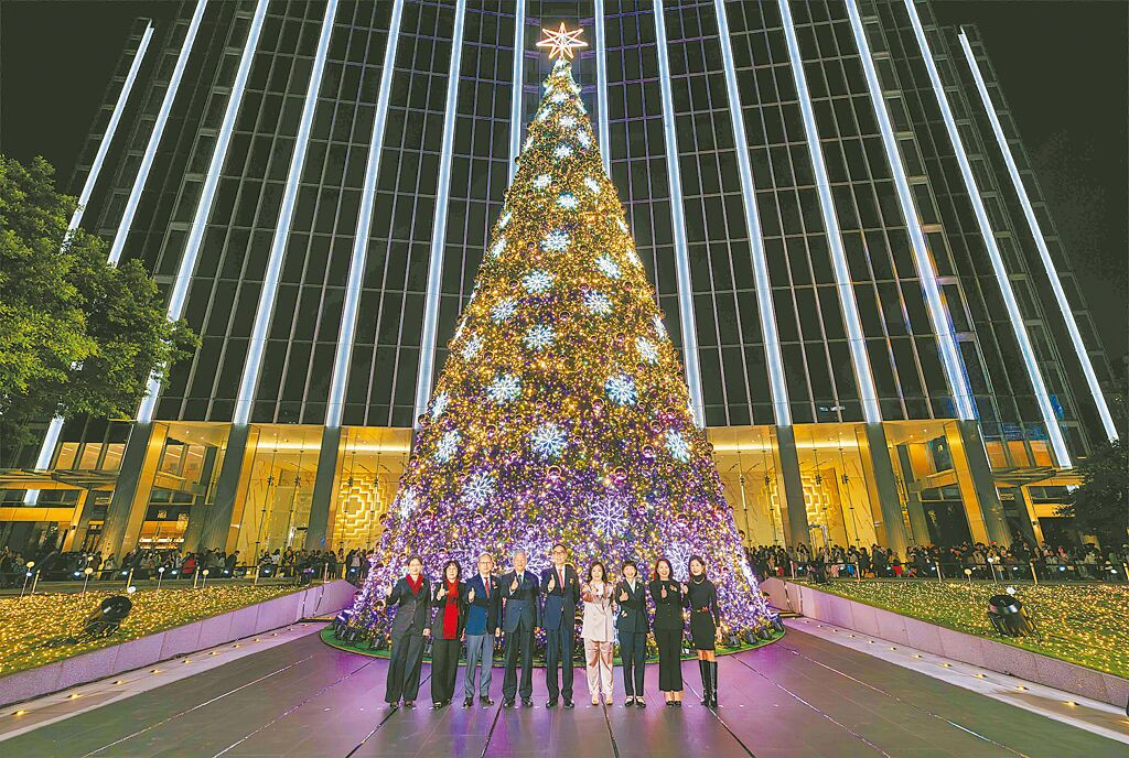 王銘陽強調,期盼凱基耶誕樹是屬於整座城市的,每一位經過這裡的市民、旅人、甚至今晚特別來拍照打卡的朋友,都能留下屬於自己的耶誕回憶。不少凱基集團同仁穿戴耶誕風格小物,拍照留念互道祝福,現場瀰漫濃厚耶誕氣氛。