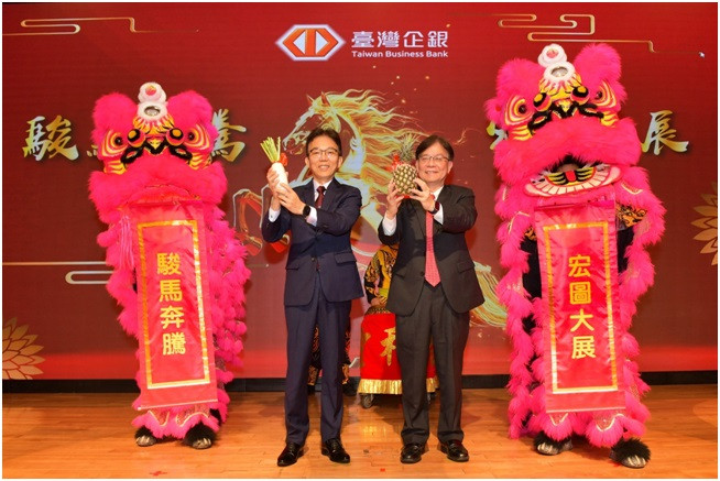 臺灣企銀舉行新春團拜,董事長李嘉祥(右)及總經理李國忠(左)期許馬年業績再創高峰。