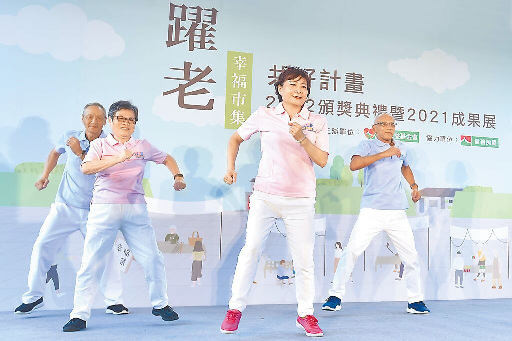 信義公益基金會共好計畫頒獎典禮邀請長者熱舞,表現健康與活力。(信義房屋提供)