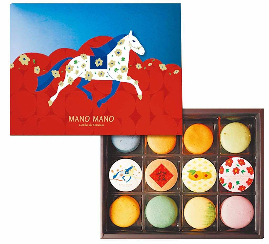 遠百竹北MANO MANO馬到好運馬卡龍禮盒,12入1080元。(遠百提供)
