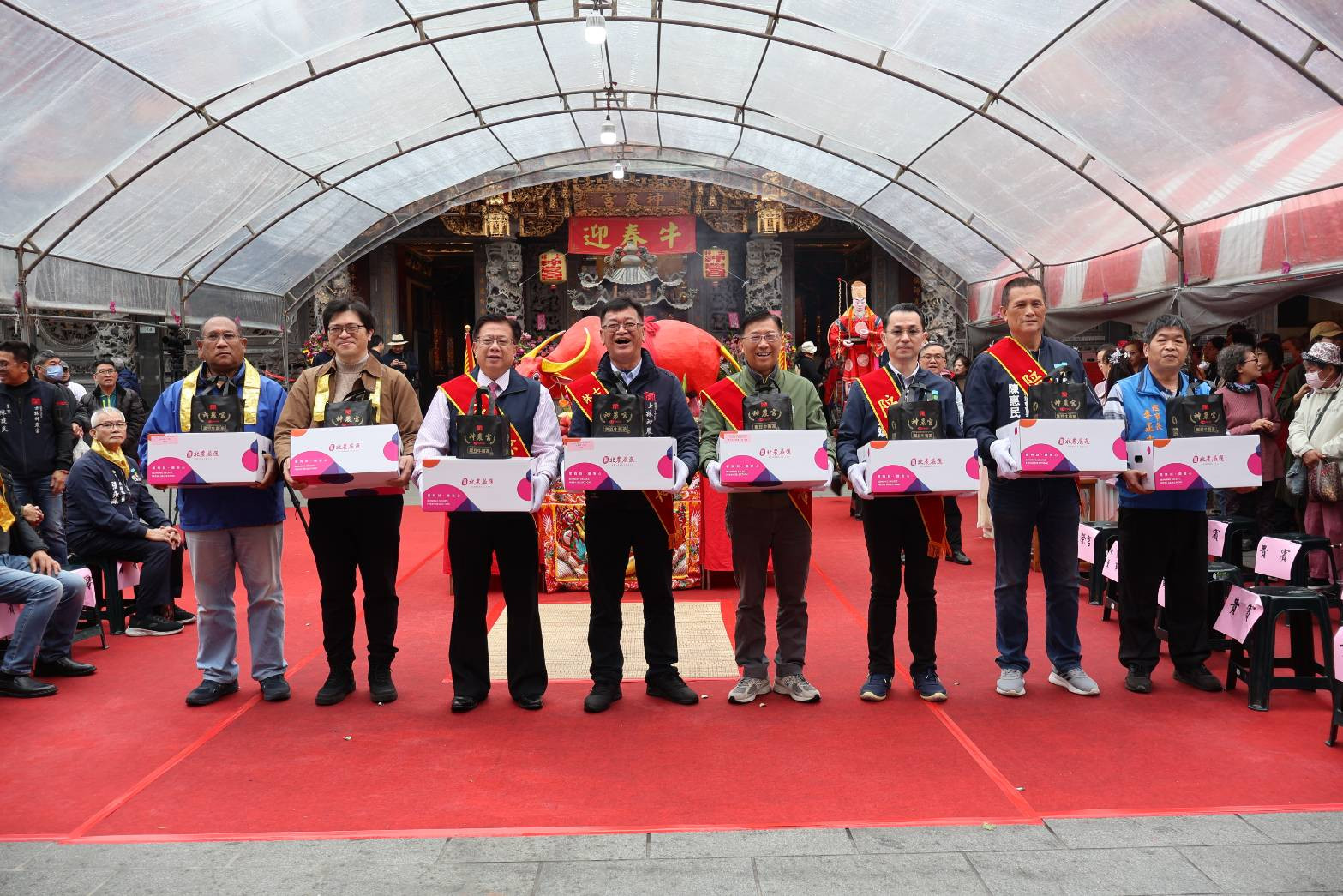 士林神農宮為傳承百年的民俗文化,凡參加者均贈台北農產北農嚴選蔬菜箱一箱及黑豆牛(/士林區公所提供)
