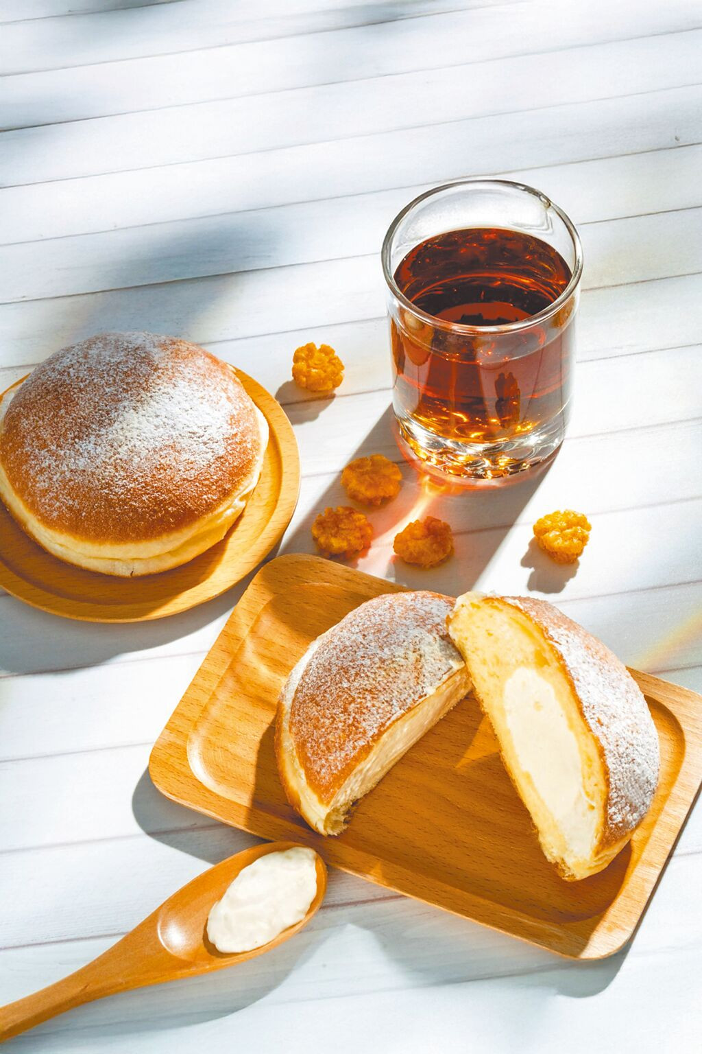 「卡士達生甜甜圈」內餡更是一大亮點,搭配奶油調和的卡士達醬,標榜經過多次試驗才成就的絕佳口感與甜度,細緻內餡平均分布在甜甜圈裡,每一口都能嘗到奶香四溢美味,簡單搭配茶飲或咖啡就能滿足下午茶儀式感,且甜甜圈油炸後香氣乾淨、不殘留厚重油感,即使冷藏後再食用,仍能維持清爽口感,外層撒上的防潮糖粉不僅提升美觀,也能減少表面回潮問題,使產品在陳列與保存更穩定。