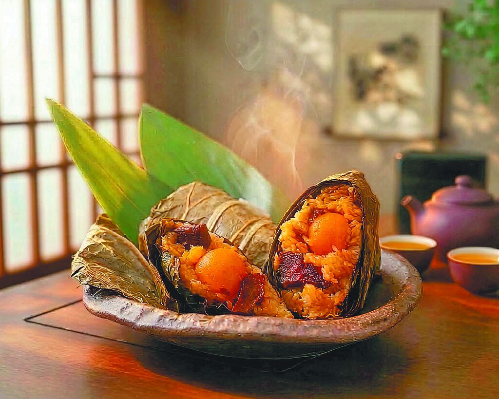 養生族群可選「松露五穀牛肝菌粽」,以黑松露醬拌入糯米,並混合紫米、燕麥、蕎麥、小薏仁、紅麴米,每一口都能嚼出五穀特有的彈跳感;「五福粽」則以豬肉、魷魚、金鉤蝦與油蔥酥呈現台式鹹香,樸實又耐吃;「麻油雞肉猴頭菇粽」把黑麻油補湯化為粽香,薑香與紅棗甜味交織,溫補不膩;「紫米奶黃流沙粽」以紫米外皮包裹金黃流沙,鹹甜交織很唰嘴。迎接夏季,「沁涼冰粽組」以糯米粉打造柔軟外皮,冷藏後仍保彈性,內含紅豆、黑芝麻、花生與伯爵拿鐵四款風味,輕甜不膩,是最適合午後的消暑點心。訂購洽詢:(02) 77113510。(中國時報)