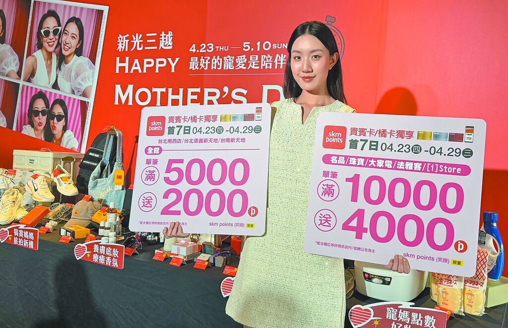 新光三越母親節檔期最佳買點為4月23日至4月29日,全館滿千送千點、指定業種滿萬元送4000點。(新光三越提供)