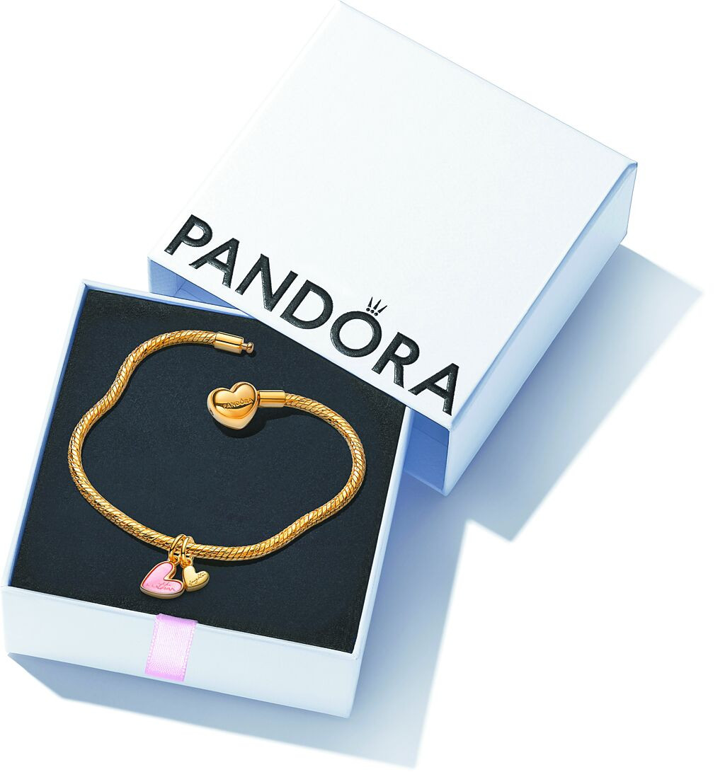新光三越PANDORA母女連心雙吊飾手鏈套組(母親節限定禮物套組),特價7680元。(新光三越提供)
