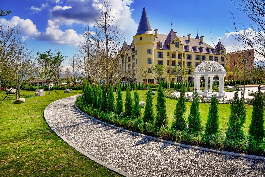 瑞穗天合國際觀光酒店以南歐莊園風格建築聞名,園區佔地遼闊,設有金色水樂園、滑水道、旋轉木馬與超跑俱樂部等多元設施,適合親子家庭與情侶度假。酒店內部以典雅歐式風格打造,從城堡造景到餐飲氛圍皆處處展現細膩工藝。