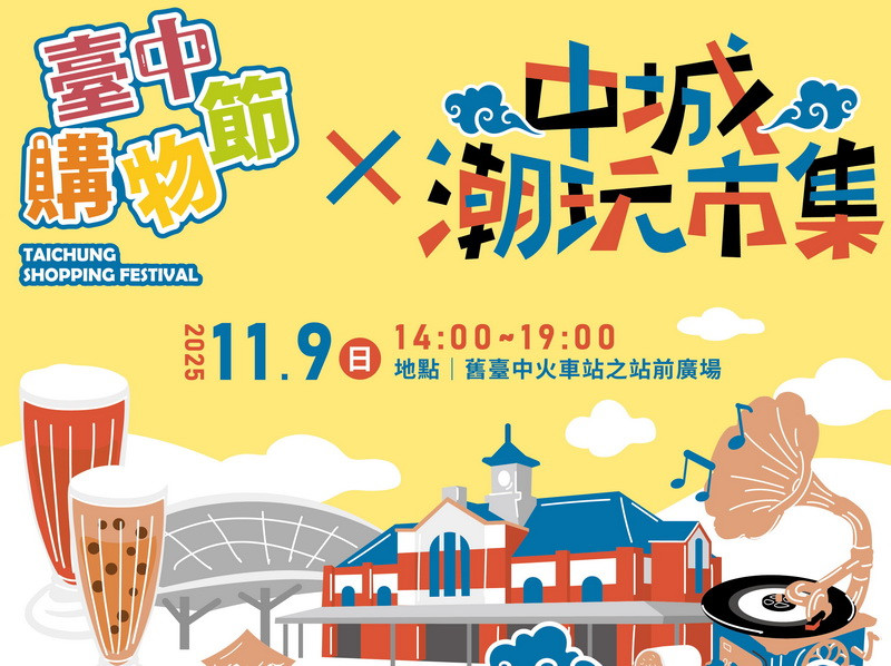 為推動中區商圈活化與產業再生,臺中市政府經濟發展局於11月9日在舊臺中火車站前廣場今舉辦「臺中車站鐵道市集—中城潮玩市集」,活動以「舊城新潮、潮玩中城」為主題,集結中區40家特色攤商與創意品牌,打造融合復古與潮流的多元風格美學市集,邀請市民朋友共度週日午後的浪漫時光。活動由臺中市政府指導、臺中市政府經濟發展局主辦、財團法人中衛發展中心執行,聯合「2025臺中購物節」活動期間,邀集自由路、電子街、繼光街三大商圈共同參與,更加入原住民族風格店家,結合在地職人、美食小吃、手作工藝、民族服飾等多元文化特色攤商,展現中區獨有的文化底蘊與生活風貌。現場規劃五大主題區域:舞台表演區、攤商展售區、迎賓意象區、互動打卡區及大會服務區,讓民眾邊逛邊拍、邊玩邊吃,一次感受臺中舊城的復古魅力與多元創新能量。