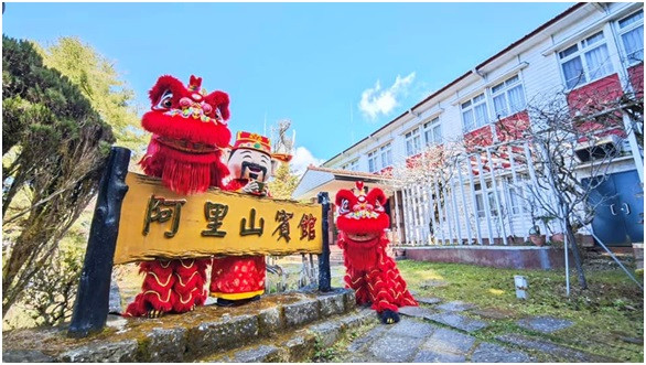 阿里山賓館位於阿里山森林遊樂園區中心點,過年期間大年初二邀請舞龍舞獅,獻上馬到成功的祝福/阿里山賓館