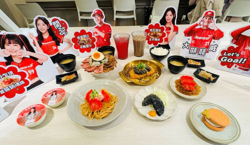 此次合作中,定食8特別選定西門町門市打造「味全龍聯名主題店」,透過視覺佈置與音樂設計,營造如同置身球場的用餐氛圍。店內可見味全龍人氣球員形象裝飾,以及專屬啦啦隊「Dragon Beauties 小龍女」成員的主題展示,其中包含等身人形立牌與應援元素,吸引不少消費者駐足拍照。搭配應援歌曲播放,讓用餐過程多了一分賽事現場的熱血感受。