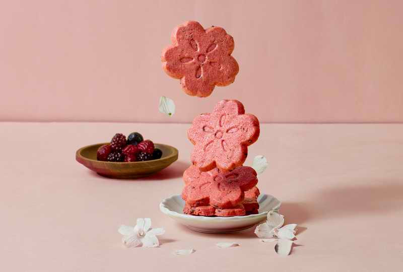 「鹽漬櫻花莓果餅乾」職人手工壓製而成的櫻花造型餅乾,細緻呈現季節專屬的優雅氛圍。選用日本鹽漬櫻花,經細心去鹽處理後,保留淡雅花香,再揉合莓果酸甜風味,交織出清新微鹹與果香層次。宛如香水般的風味設計,輕柔綻放春末初夏的氣息,餘韻細膩迷人。