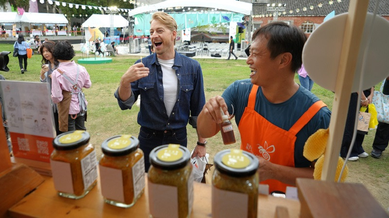 旅居臺灣多年的法籍美食達人「法比歐」也蒞臨南波灣市集大啖南臺灣特色美食