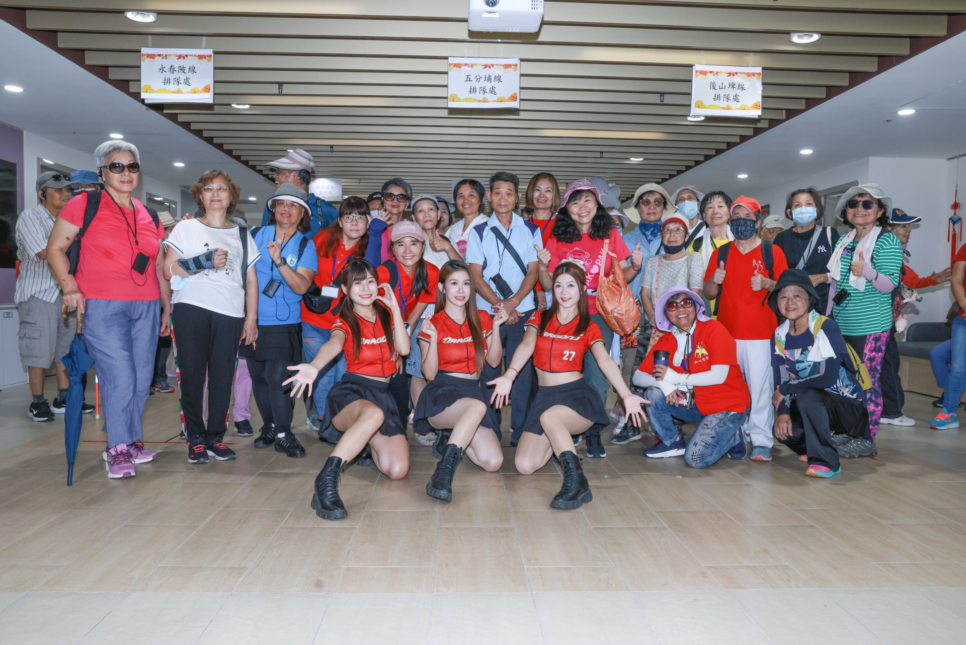 味全龍啦啦隊「小龍女」成員琪琪、馬妹、星岑,出席由新光銀行、紅心字會主辦「重陽敬老走讀活動」陪伴台北市信義老人服務中心暨廣慈、達仁日間照顧中心近150位長者一起同樂。其中有一位爺爺見到琪琪、馬妹、星岑時,直接開口對女孩清唱起了情歌「夜來香」讓她們頓時害羞到不行,默默化身成小孫女為爺爺伴起舞來。