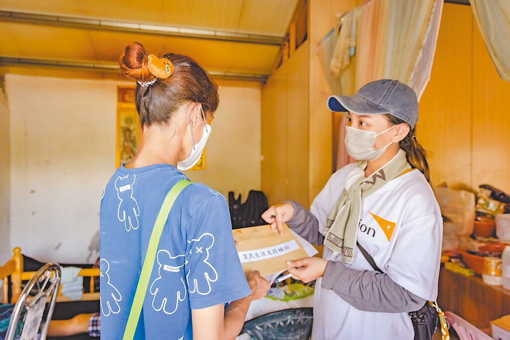 台灣世界展望會社工訪視受災戶並發放生活補助金。(蝦皮購物提供)