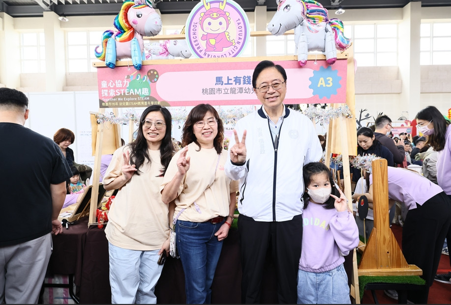 桃園市長張善政及教育局局長劉仲成,出席桃園市第三屆「幼兒園 STEAM 教育嘉年華」。/桃園市政府教育局提供.