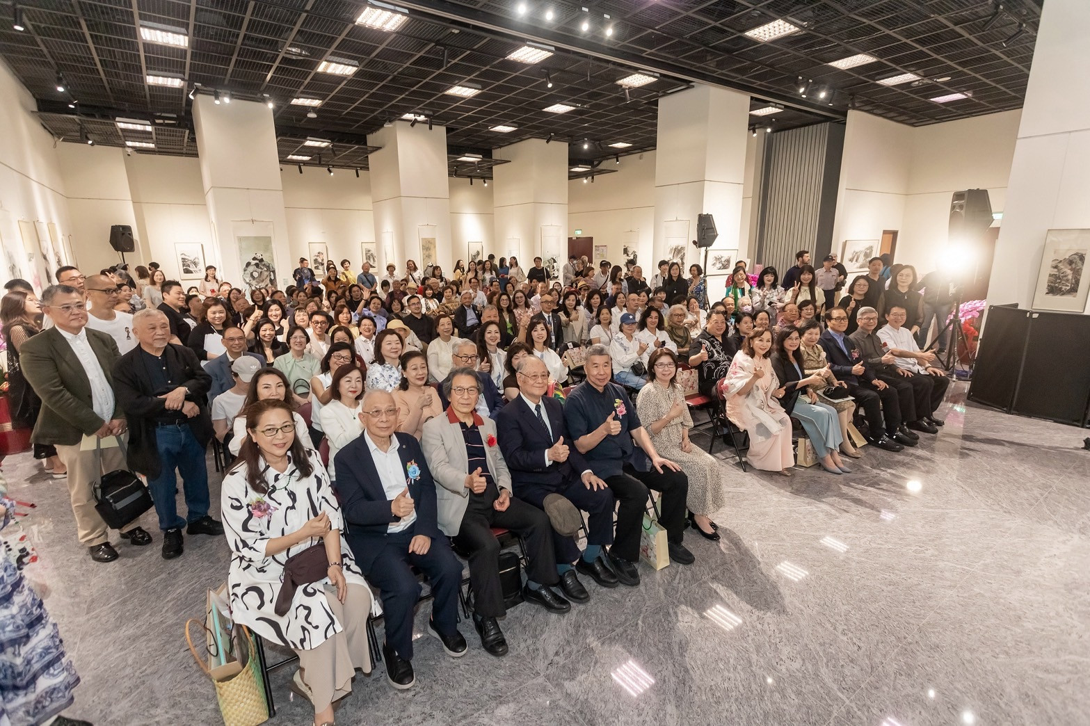 《白雲傳承.水墨初心——黃君璧・黃湘詅台北畫展》於4月18日在國立中正紀念堂一樓第二展廳隆重開幕,現場匯聚政界、學界與藝文界重要人士,共同參與剪綵儀式。(照片提供|白雲堂藝術研究會・名德國際傳播)