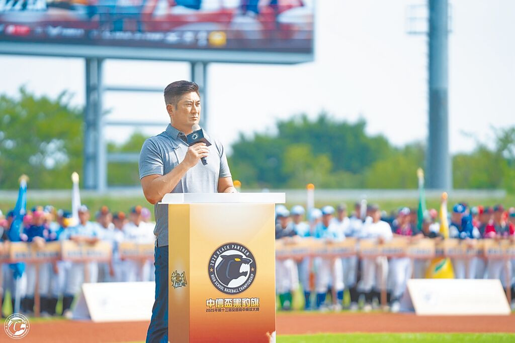 台灣大總經理林之晨(中)以「超能戰隊隊長」身分出席並邀請台灣大運動家族「霹靂舞國手」孫振(左二)和剛加入運動家族的NANA林李納(右二)一同開球。(吳松翰攝)