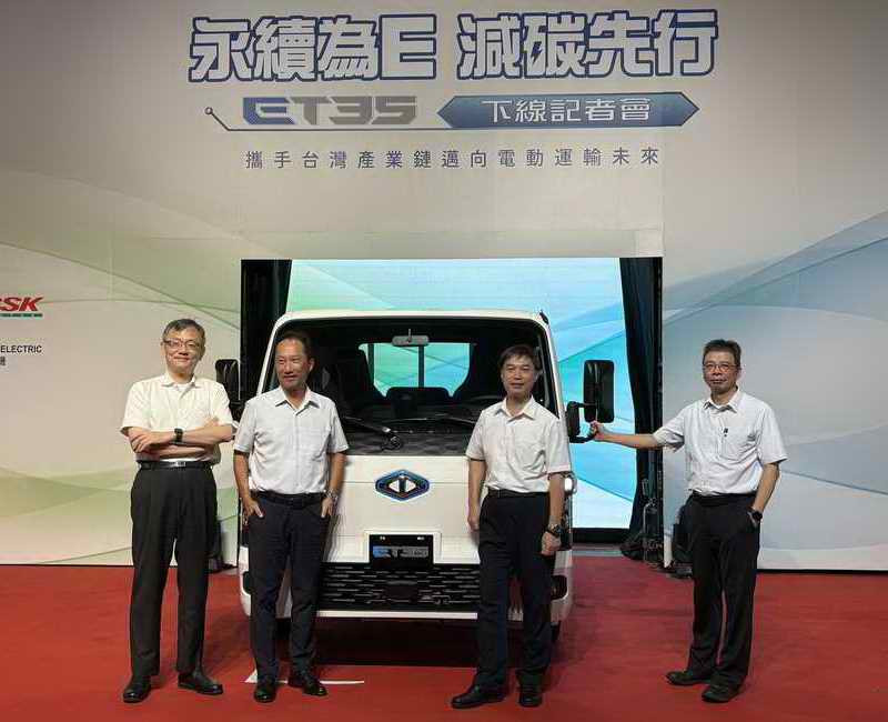 中華汽車今(22)日於新竹廠舉辦3.5頓電動商用車ET35下線記者會,宣告國內首輛依循經濟部「智慧電動車十加一系統架構」開發完成的車型正式進入量產階段。經濟部產業發展署、工業技術研究院、車輛研究測試中心(ARTC)等機構代表,以及鸿海、士林電機、中華台亞、全興創新、富智捷、儒億多家協力廠商皆到場共裏盛舉,共同見證台灣電動商用車產業邁出的重要一步。中華汽車總經理曾鑫城表示,ET35國產化率超過九成,全車在地供應商家數達86家,在經濟部支持下,中華汽車發揮自主研發設計能力,串連上下游廠商打造電車國家隊,為催生首台電動商用車,齊心打造從底盤、動力系統到電池芯與模組等關鍵零組件,展現台灣在電動商用車自主整合與產業升級上的堅強實力。