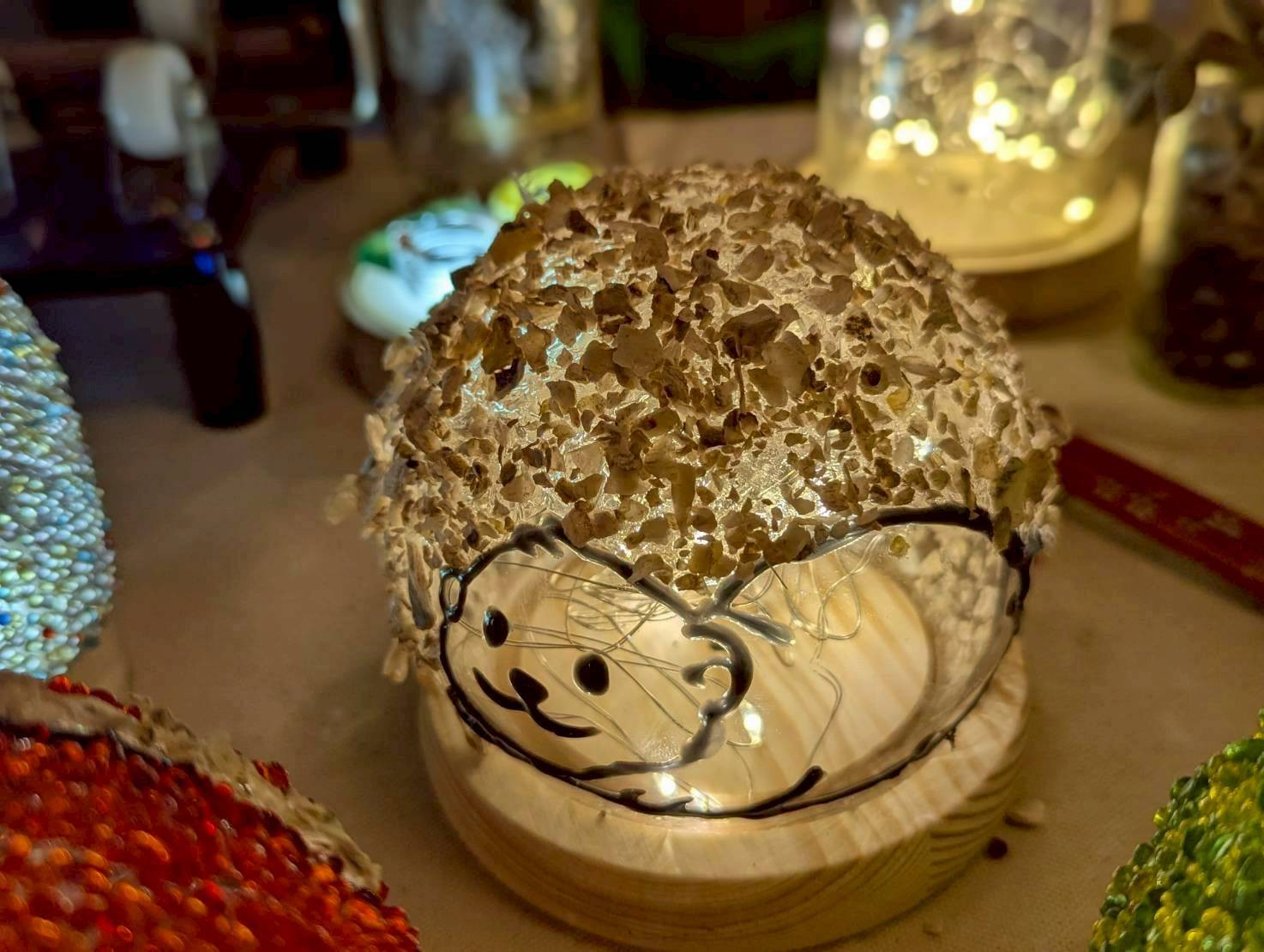 古寧頭社區除了以戰地史蹟聞名,同時也蘊藏豐富的農漁資源,其中以石蚵養殖最具代表性。然而,蚵殼廢棄物長期以來不易處理,除用於改良土質與農作物栽培外,近年在地工藝職人積極投入再利用研究,成功研發出以蚵殼為核心的創意工藝品。此舉不僅紓解廢棄壓力,更注入文化與創意價值,逐步形塑出具有金門特色的「蚵殼循環美學」特色品牌。