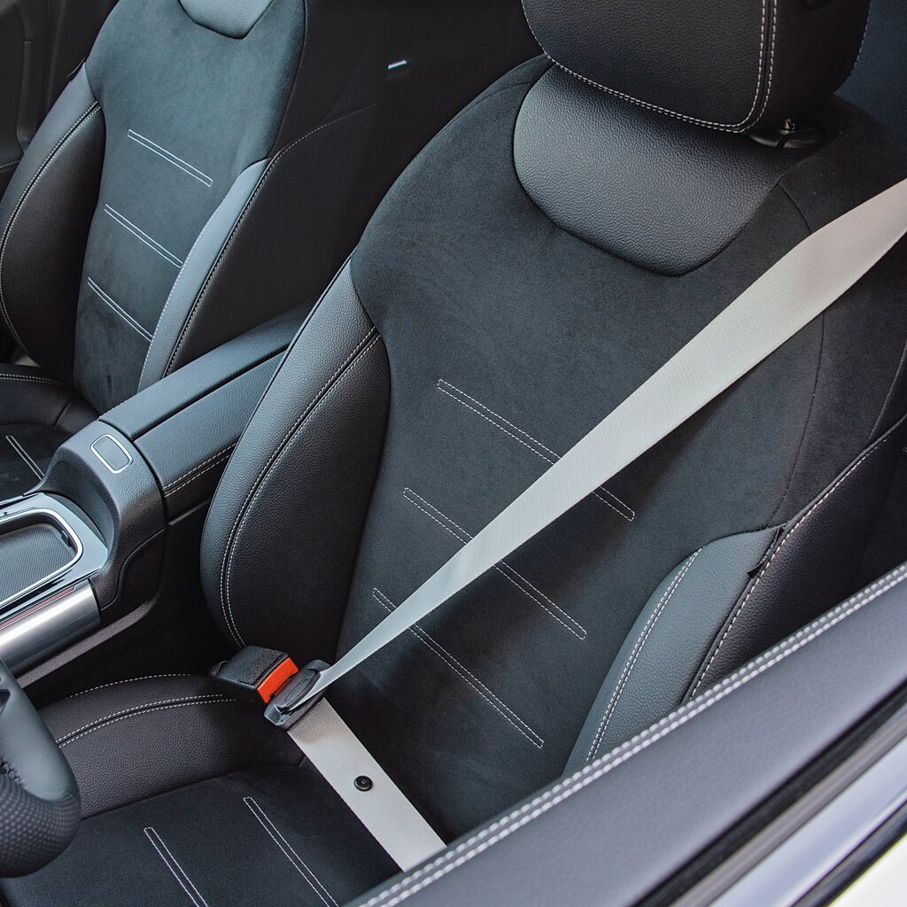 黑色內裝搭配灰色車縫線,安全帶也選用灰色相呼應。(陳大任攝)