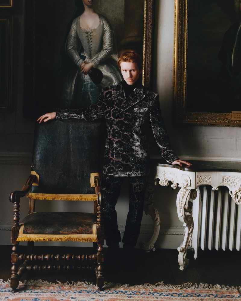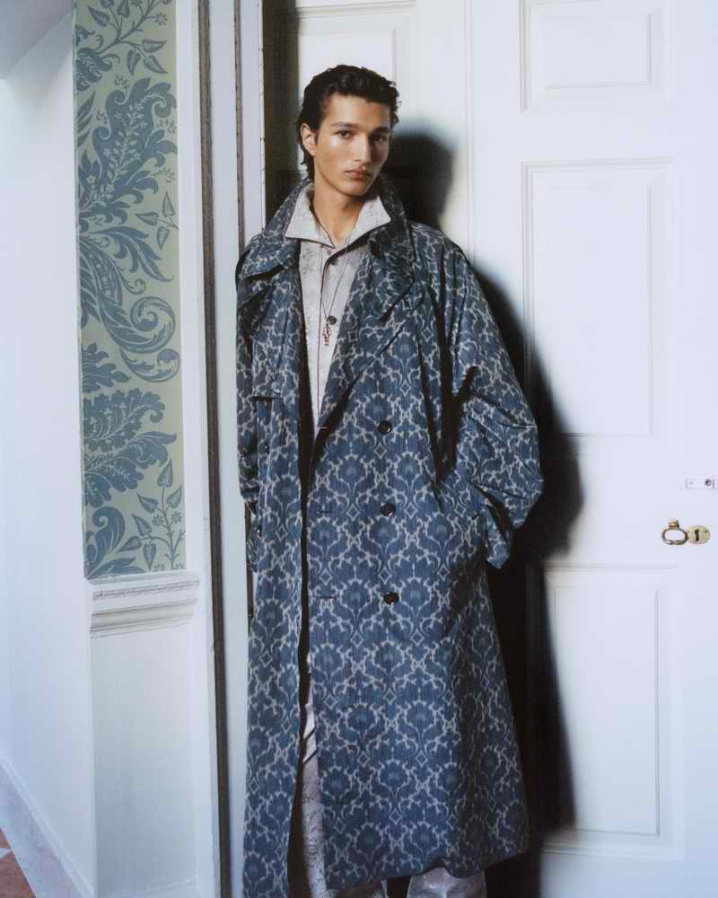大衣與夾克透過柔軟的喀什米爾、馬海毛打造,搭配粗針織披肩領。桑蠶絲睡衣式襯衫與長褲作為內搭層次,天鵝絨錦緞則呼應英格蘭紡織設計師威廉莫里斯(William Morris)的作品,裁製成以馬術為靈感的大衣與套裝。