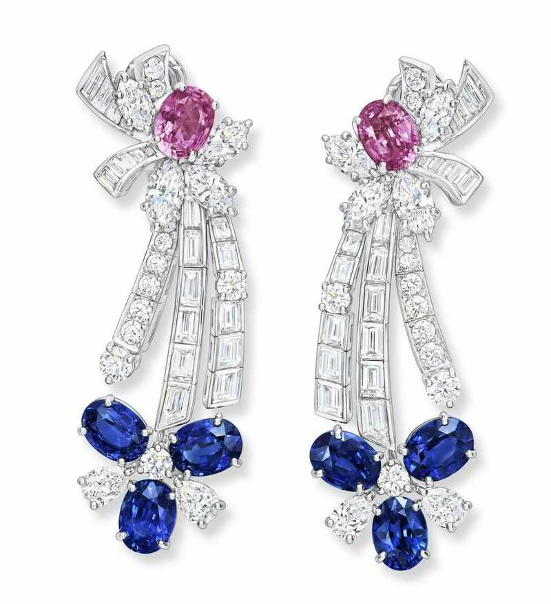 海瑞溫斯頓 頂級珠寶系列藍寶石、粉紅藍寶石及鑽石耳環