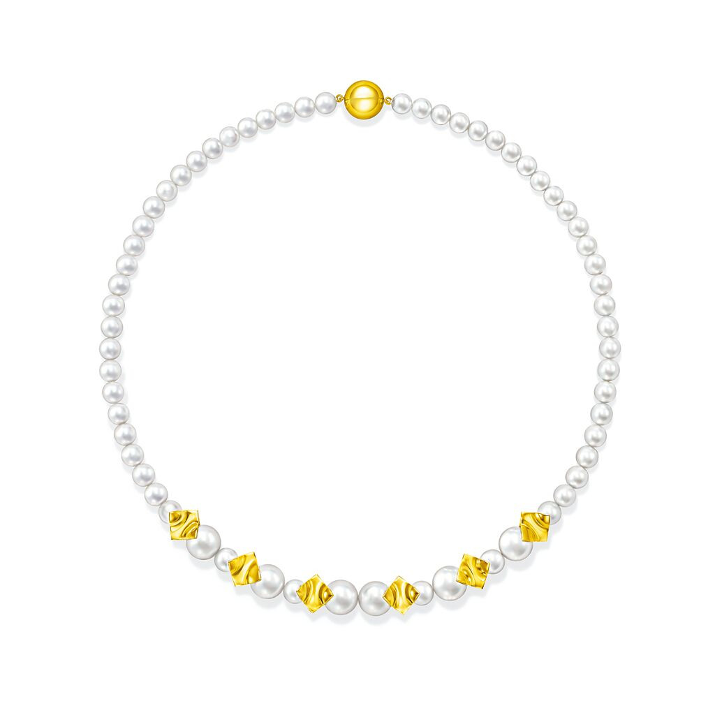 TASAKI M/G SQUARE LEAF黃K金淡水珍珠項鍊,49萬2000元。(TASAKI提供)