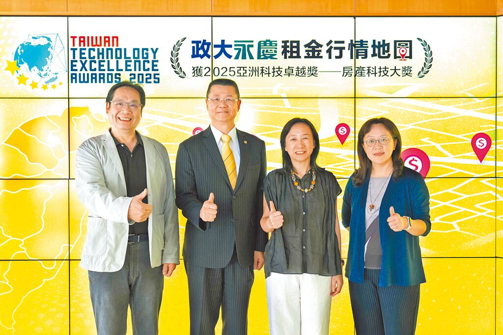 由餿主意有限公司主辦、中國時報協辦的「房仲業菁英講座」15日舉行,中國時報副社長王儒哲(左三)與GAA金仲學院首席策略長韓富城(左起)、消基會董事暨房委會委員張欣民、餿主意整合行銷企劃執行長傅振維、頂贏國際資產管理投資顧問董事長吳鴻暉、智行法律事務所律師詹連財合影。(黃世麒攝)