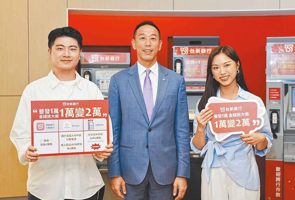 台新銀行資深副總經理黃天麟(中)表示,全台逾4300台ATM提前完成測試與現金補充,方便民眾領取普發1萬元。(台新提供/黃琮淵台北傳真)