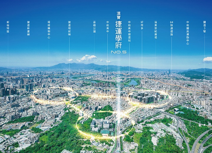在交通路網的部份,「漢寶捷運學府NO.5」基地所在的萬大線中和高中站LG08站,通車後14分鐘直達中正紀念堂站,快速轉乘淡水信義線、松山新店線到台北市心各大商圈、9站達台北雙星銜接機捷國門。同時擁有3分鐘上北二高中和交流道,6分鐘進入台64線的交通優勢。