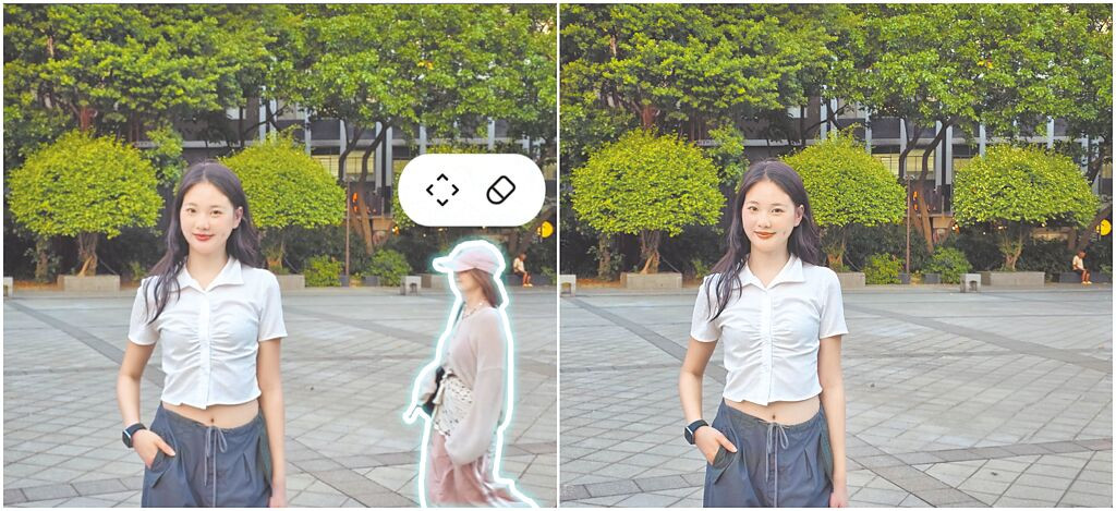 使用三星Galaxy S25 Ultra拍照,可輕鬆並精準地消除亂入的路人。(古明弘攝)