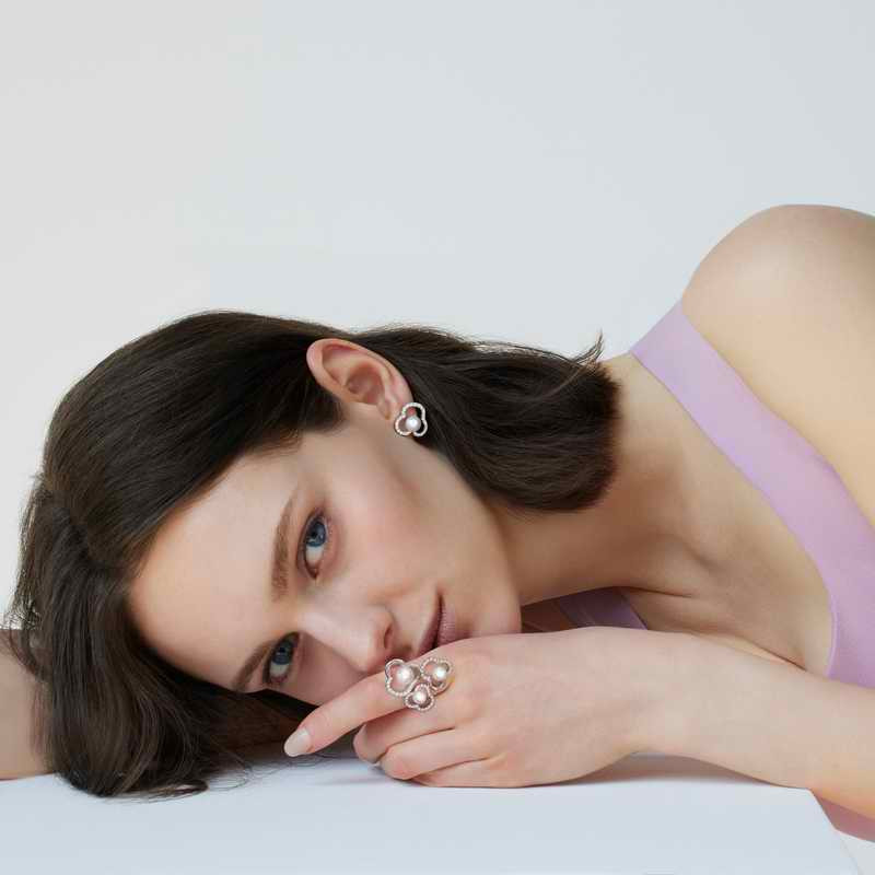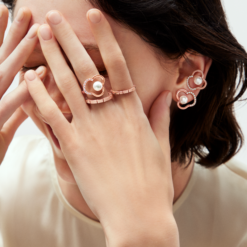 chants系列,以花朵的自然輪廓與生命律動為靈感,珠寶線條宛如優美旋律般流轉。採用TASAKI 招牌18k櫻花金,搭配鑽石與珍珠,展現獨具一格的優雅質感,能完美襯托現代女性自信閃耀的魅力。
