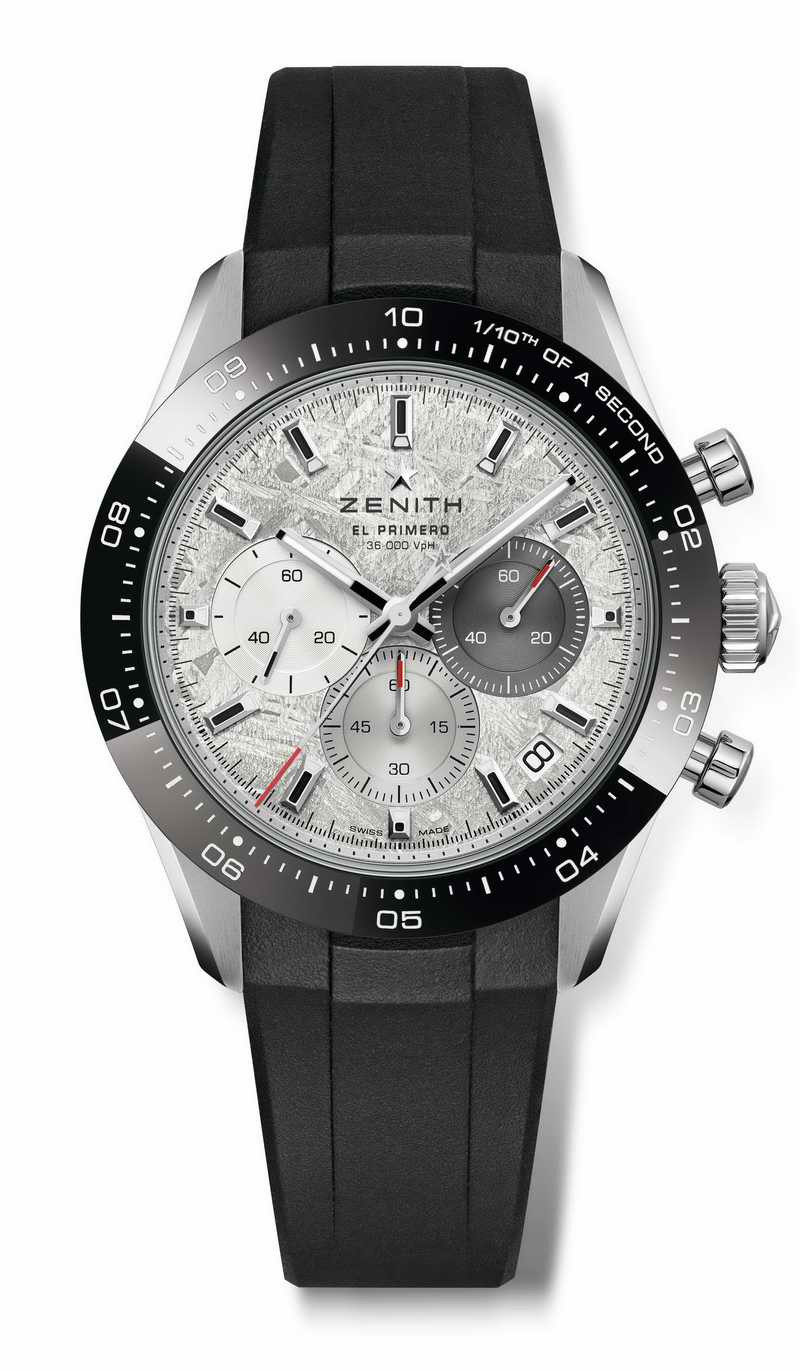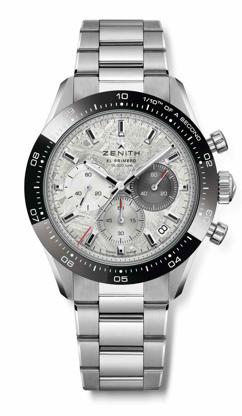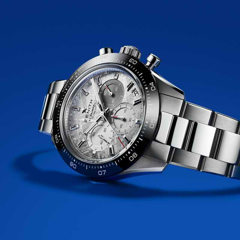 Chronomaster Sport計時大師運動計時腕錶曾榮獲2021 日內瓦高級鐘錶大賞(GPHG)「最佳計時腕錶獎」,是薈萃ZENITH真力時無可比擬的高振頻自動上鏈計時腕錶工藝的矚目之作。腕錶計時可精準顯示至1/10秒,已成為當代製錶界的工藝典範。如今,這款全新力作採用真正的隕石打造錶盤更為腕錶增添詩意,令人感悟時間的浩瀚無邊。