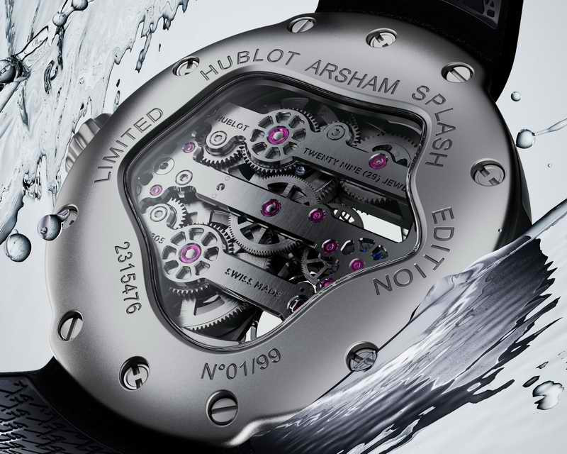 在設計 MP-17 Arsham Splash 的水花形開口與流線造型時,Hublot 與 Arsham 共同探索「時間的形體」。雙方以創新工程結合藝術語言,讓時計在結構、比例與視覺之間達成完美平衡。Arsham 為此設定三大創作原則: